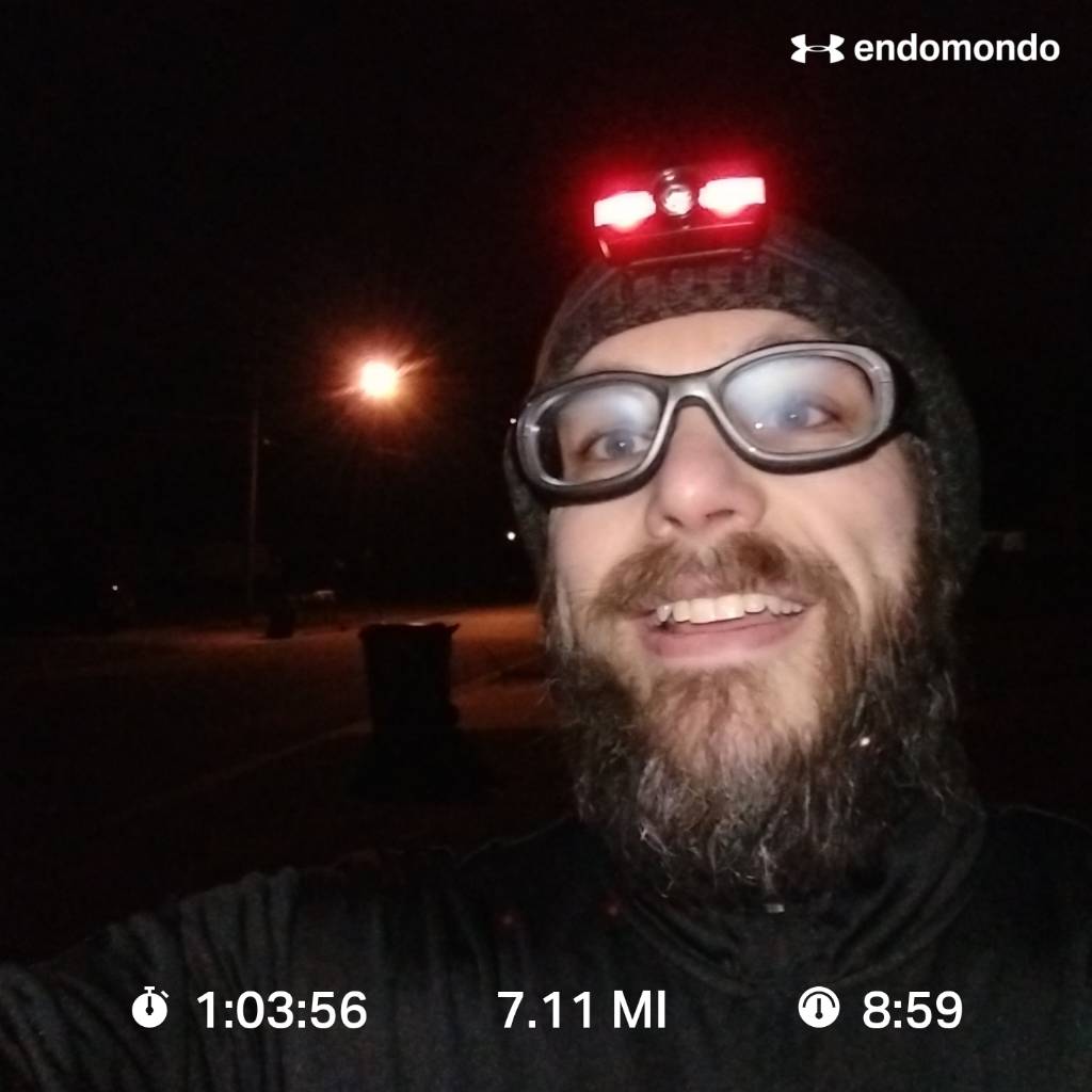 This morning the wheels pretty much fell off my 6.5 mile run. As you can see I really only got a little more than 4 miles in. I had to stop because I just couldn’t keep jostling things around and keep the trots from hitting me. I did manage to get another really slow 1.5…