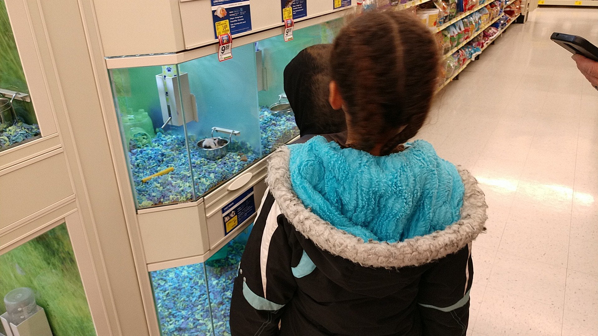 On our way home from birdhouse building we stopped to checkout the animals at PetSmart. The kida of course wanted to get more pets but we aren’t ready to go down that road just yet. We already have a cat that they have a hard time with.