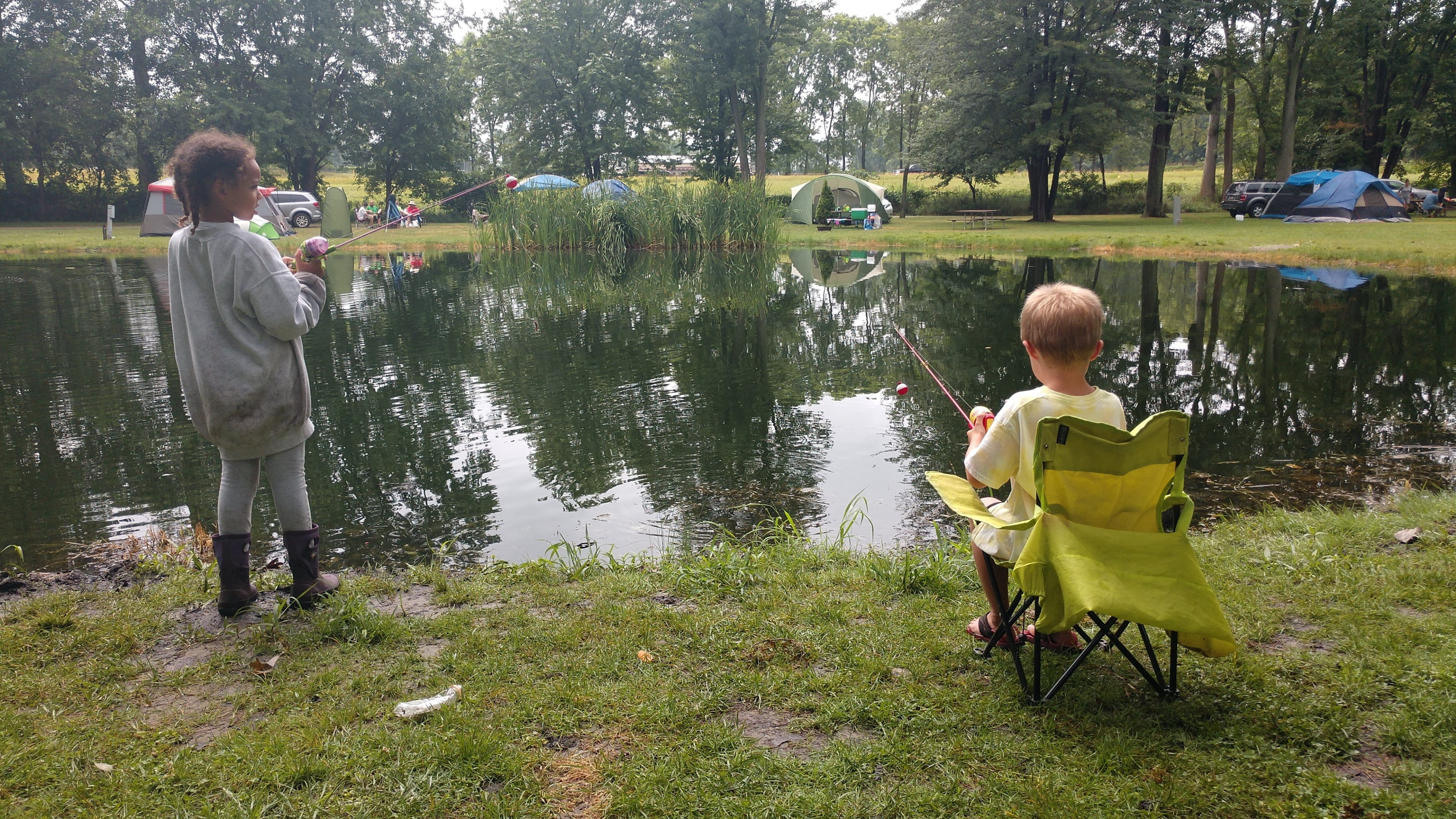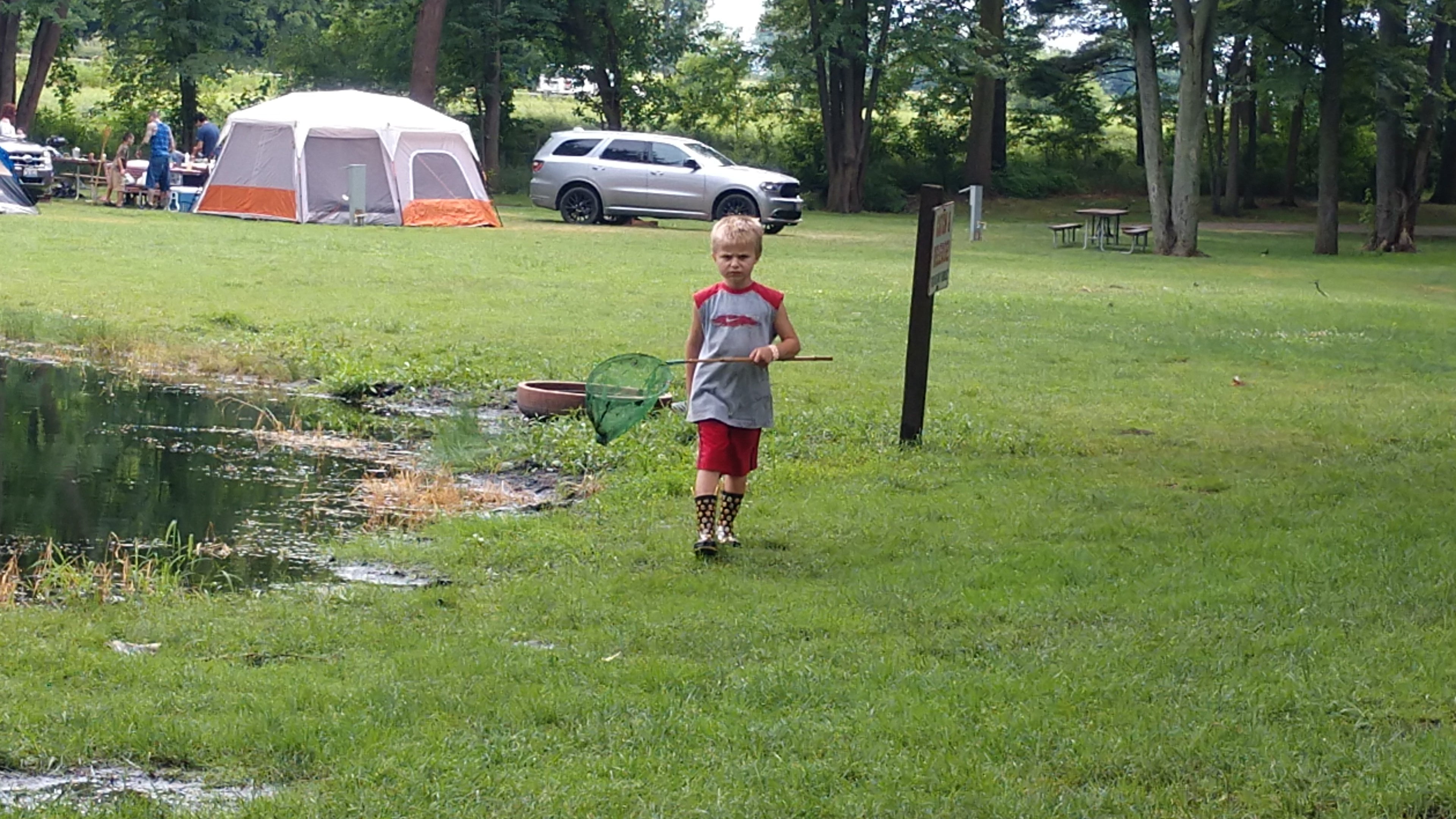Jacob spent a good amount of time on Sunday looking for frogs and toads, along with some other kids that were also camping around the pond.