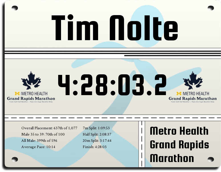 I completed my 2nd marathon today, finishing with an average pace time of 1:01 better than last year. It was still a tough last 3-6 miles of the run, but I finished with a good run the last 1/2 to 3/4 of a mile. I took it a little easier on one of the last couple of miles to help out a fellow #HWI team member from the East Michigan group that was having a rough go of it. I needed the break too as my last 6 miles I was fighting off some calf cramps. Overall it was a great day and I finished much better this year than last. There were so many that came out to cheer us on it made a huge difference. #HWI #GRMarathon #Run4Water #WhyIRun